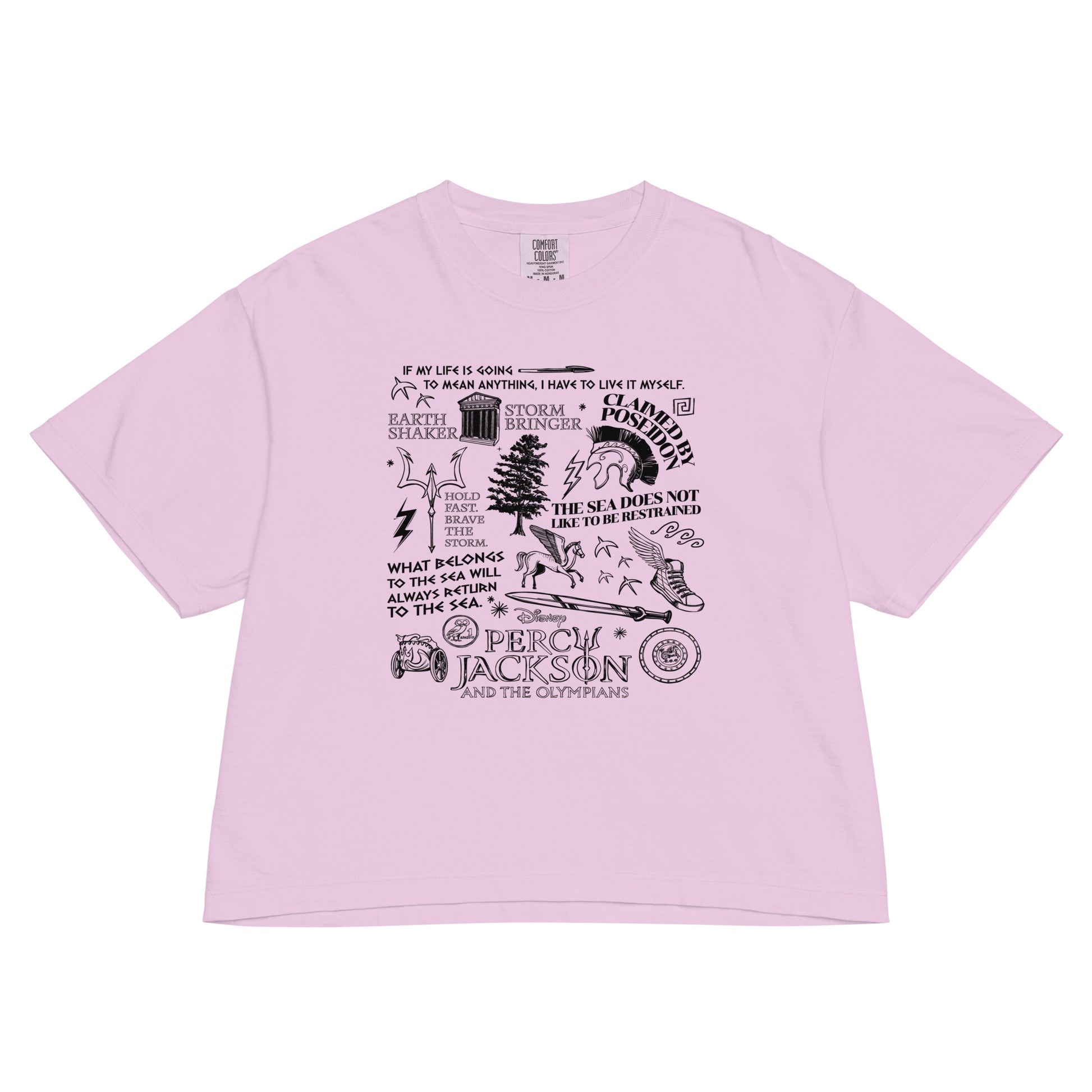 Show off your Camp Half-Blood pride with the Percy Jackson Comfort Colors Women's Boxy T-Shirt Olympians. Inspired by the legendary gods and heroes of Percy Jackson & the Olympians, this boxy t-shirt combines comfort, style, and fandom in one versatile piece.