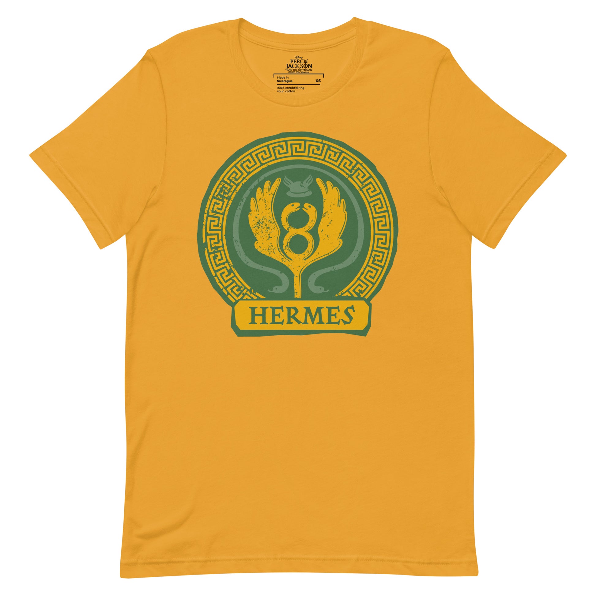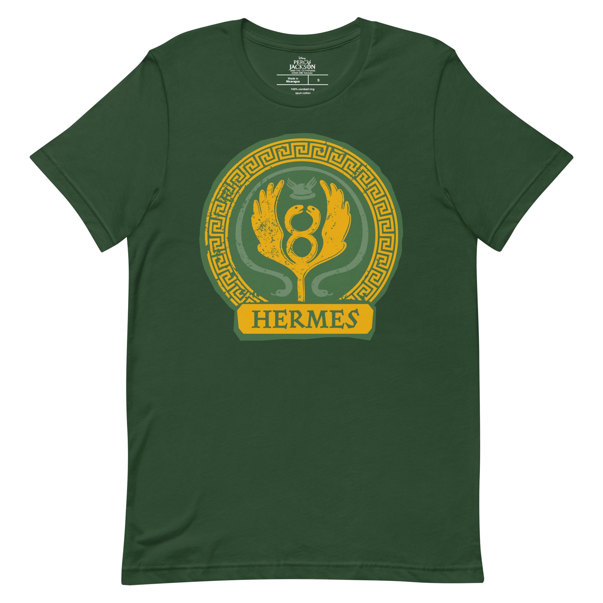 Fly into adventure with the Percy Jackson Hermes Cabin T-Shirt. Featuring the winged sandals emblem and Hermes Cabin – this shirt celebrates the clever and speedy children of the God of Travelers and Thieves.